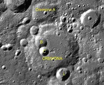 Por convención estos elementos son identificados en los mapas lunares poniendo la letra en el lado del punto medio del cráter que está más cerca de Cremona.
