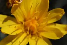 Es una planta herbácea perenne que crece con un tallo erecto de hasta 45 centímetros de altura y, a menudo lleno de largas cerdas. Las hojas a veces erizadas lanosas son oscuras y con lóbulos agudos y contundentes. Las hojas más largas en la base de la planta llegan a unos 25 centímetros de largo. La inflorescencia tiene desde uno hasta diez capítulos de flores con brácteas ásperas o hirsutas y hasta 60 flores liguladas amarillas. El fruto es un aquenio con alrededor de un centímetro de largo de color negro, verde o rojo a veces teñida, y tiene un blanco vilano.[2]