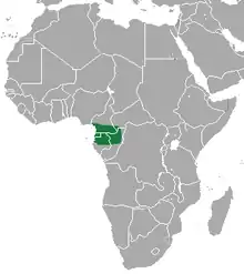 Se encuentra en Camerún, República Centroafricana, República del Congo, República Democrática del Congo, Guinea Ecuatorial y Gabón.[1]
