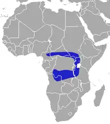 Vive en Angola, Camerún, República Centroafricana, República Democrática del Congo, Ruanda, Tanzania, Uganda y, posiblemente también, en Sudán.[1]