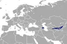 Se encuentra en el Azerbaiyán , el Kazajistán, el Tayikistán, el Turkmenistán y, posiblemente también, el Kirguistán y el Uzbekistán.[1]
