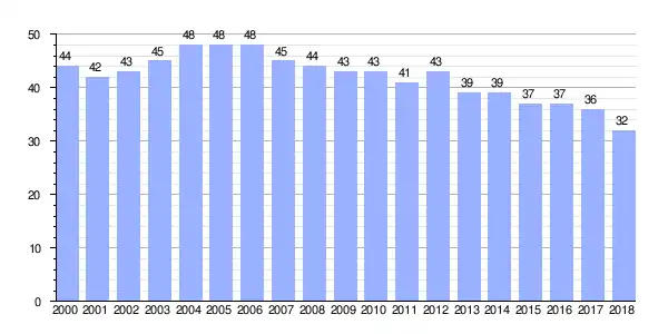| Gráfica de evolución demográfica de Cruceiro entre 2000 y 2018 |