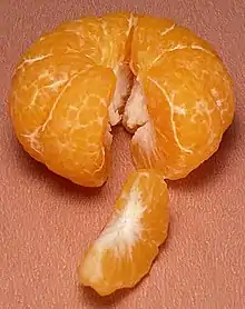 En geometría, una cuña esférica es una porción de una bola limitada por dos discos planos y una luna esférica (denominada la base de la cuña). El ángulo entre los radios que se encuentran dentro de los semidiscos delimitadores es el ángulo diedro de la cuña α. Si AB es un semidisco que forma una bola cuando gira completamente sobre el eje z, cuando se gira AB solo un ángulo α dado produce una cuña esférica del mismo ángulo α.[1] Beman (2008)[2] señala que "una cuña esférica es a la esfera de la cual es parte como el ángulo de la cuña es a un perigono".[nota 1] Una cuña esférica de α = Π radianes (180°) se denomina semiesfera, mientras que una cuña esférica de α = 2Π radianes (360°) constituye una bola completa.