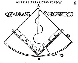 El cuadrante[1][2] es un antiguo instrumento utilizado para medir ángulos en astronomía y navegación. Se le llama así porque consiste en una placa metálica con forma de un cuarto de círculo. El arco está graduado, y en uno de sus lados hay dos mirillas (para dirigirlo hacia el astro deseado). Del vértice cuelga una plomada que indica la dirección vertical. La lectura se obtiene a partir de la posición de la cuerda de la plomada sobre el arco graduado. Entre sus aplicaciones se encuentran la de medir la altura de los astros, que es el ángulo formado por el horizonte y la mirada que dirigimos al astro en cuestión y para hallar la latitud.