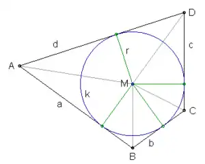 - Weisstein, Eric W. «Cuadrilátero tangencial». En Weisstein, Eric W, ed. MathWorld (en inglés). Wolfram Research.