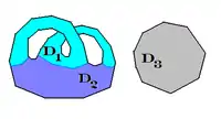 Se puede demostrar que cualquier 3-variedad orientable se puede construir a partir de dos cubos con asas del mismo género pegándolos por su frontera mediante una identificación de las superficies frontera, i.e. mediante un homeomorfismo y así la tres variedad se puede ver como el espacio cociente . Esta es la célebre descomposición de Heegaard de la 3-variedad.