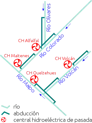 | Central hidroeléctrica Alfalfal | CHILGENER S.A. | 1991 | Río Colorado y Olivares | 30,0 |