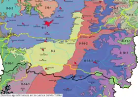 El Atlas agroclimático de Chile distingue 11 distritos agroclimáticos en la cuenca: