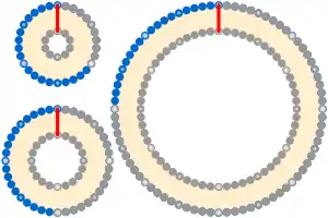 Esto también significa que una pista de atletismo tiene el mismo desplazamiento entre las líneas de inicio en cada calle, igual a 2π el ancho de la calle, tanto como si el perímetro de la pista es de 400 m o tiene el tamaño de la Vía Láctea.