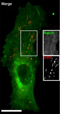 - Wagner DD, Olmsted JB, Marder VJ (octubre de 1982). «Immunolocalization of von Willebrand protein in Weibel-Palade bodies of human endothelial cells» (PDF). J. Cell Biol. 95 (1): 355-60. PMC 2112360. PMID 6754744. doi:10.1083/jcb.95.1.355.