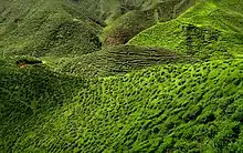 En regiones con clima tropical, el café,[4] cacao, caña de azúcar, plátanos, naranjas, algodón y yute (una fibra vegetal suave y brillante que se puede hilar en hilos gruesos y fuertes) son cultivos comerciales comunes. La palma aceitera es una palmera tropical y su fruto se utiliza para hacer aceite de palma.[5]