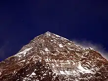 ![]() Monte Everest. El pico levemente más bajo a la derecha de la cumbre principal en la Cumbre Sur. | ||
