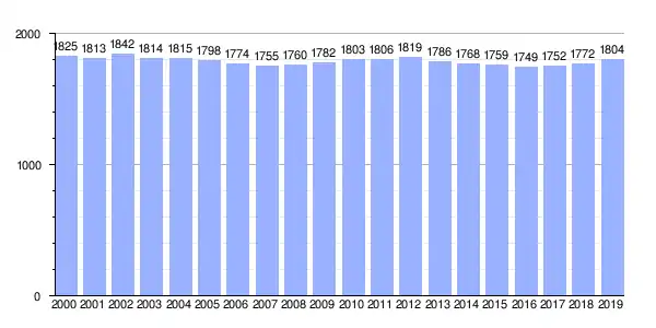 | Gráfica de evolución demográfica de Curtis entre 2000 y 2019 |