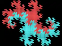 ![]() Curva de Lévy C ![]() La curva del dragón, variante de 60°. Su autosimilitud es claramente visible |