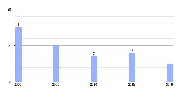 | Gráfica de evolución demográfica de Cutián (aldea) entre 2000 y 2019 |