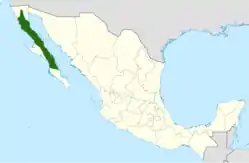 Endémica de los estados de Baja California y Baja California Sur en México.[1]