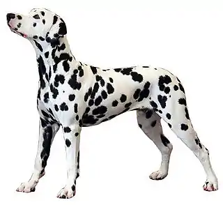 El dálmata es una raza canina que debe su nombre a la histórica región de Dalmacia. Su característica principal es su singular pelaje moteado de color negro, hígado o limón. Al nacer, las crías carecen de manchas, las cuales van apareciendo por todo su cuerpo durante el primer año de vida. La hiperuricemia es común entre los dálmatas, por lo cual suelen ser considerados los únicos mamíferos uricotélicos. Otro rasgo de origen genético propio de la raza es su alta predisposición a la sordera.