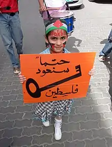 El día de la Nakba (árabe: يوم النكبة Yawm an-Nakba, «Día de la Catástrofe») es un día de luto nacional entre los palestinos que evoca la Nakba, la expulsión o huida de gran parte de la población palestina de sus hogares como consecuencia del nacimiento del Estado de Israel en 1948.[1] Se suele conmemorar el 15 de mayo, justo después del 14 de mayo, día del calendario gregoriano en el que los israelíes declararon su independencia.[2] La conmemoración oficial de este día fue proclamada por primera vez por Yasir Arafat en 1998, coincidiendo con el cincuenta aniversario del nacimiento de Israel.[1]