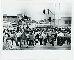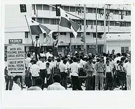 ![]() Protesta de panameños en la frontera con la Zona del Canal. La foto fue tomada desde territorio estadounidense, cerca del Hospital Gorgas. | ||