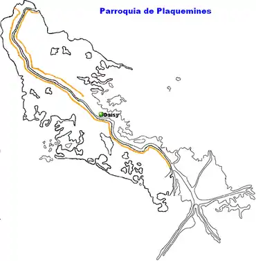 Localización de Daisy en el mapa de la Parroquia de Plaquemines.
