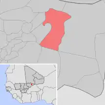 Se encuentra ubicada en el centro-este del país, cerca de la frontera con Burkina Faso y con la región de Tombuctú.