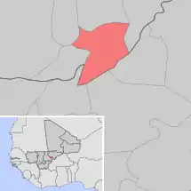 Se encuentra ubicada en el centro del país, cerca de la confluencia de los ríos Bani y Níger, a poca distancia al norte de la frontera con Burkina Faso.