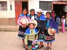 Conforman el elenco dancístico 5 varones adultos, un niño. El que va adelante se llama «Maman awqa»[4] y un niño con la misma indumentaria, se denomina «llullun awqa»;[5] este va detrás del «maman awqa» agarrándose de una cola de puma cosida al fondillo del precedente. La presencia de una guiadora simbólica y un niño en esta danza, denota el desplazamiento de una tribu agresiva de menor desarrollo cultural.[6]