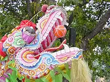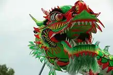 El desfile del dragón chino, como norma general, se lleva a cabo junto con las danzas del león, acróbatas, practicantes de kung fu entre los tambores, un gong y platillos, culminándose con fuegos artificiales.[2][3] La danza del dragón, suele ser confundida con la del león. Las diferencias son que el león es controlado por solo 2 personas