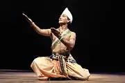 - Shabdam, danza acompañada por un poema o una canción sobre un tema devocional o amoroso. Constituye la primera sección narrativa del espectáculo.