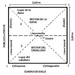 Las danzas se bailan en un cuadrado imaginario de 2,60 metros de lado como mínimo.