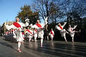 Danza guipuzcoana interpretada por mujeres que se realiza como saludo a las autoridades. Bailan un número indeterminado de parejas.