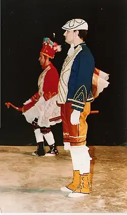 Va vestido de dos formas, o bien de kaskarot, o si no, con otras prendas más individualizadas, guerrera y pantalón corto, engalonados de oro, boina negra, medias blancas y zapato negro. Es el director, jefe de la comparsa, y estaba considerado el mejor bailarín del cortejo. Los demás le deben la obediencia que a tal rango le corresponde.