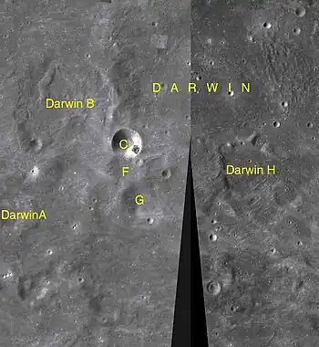 Por convención estos elementos son identificados en los mapas lunares poniendo la letra en el lado del punto medio del cráter que está más cerca de Darwin.