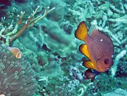 Dascyllus auripinnis es una especie de pez de la familia Pomacentridae, en el orden de los Perciformes.