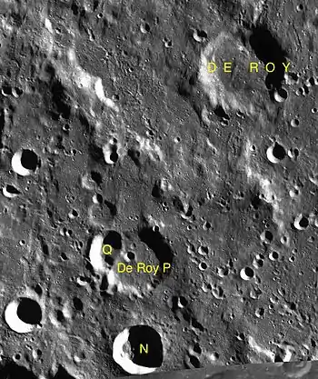 Por convención estos elementos son identificados en los mapas lunares poniendo la letra en el lado del punto medio del cráter que está más cerca de De Roy.