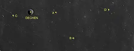 Por convención estos elementos son identificados en los mapas lunares poniendo la letra en el lado del punto medio del cráter que está más cerca de Dechen.