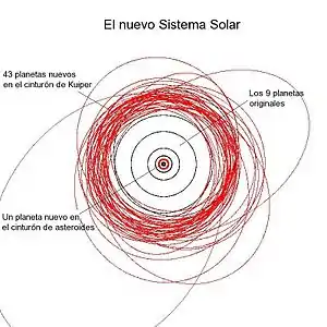 [2] Se establecerá un proceso de la UAI para asignar a los objetos que estén en los límites en la categoría de planeta enano u otras.