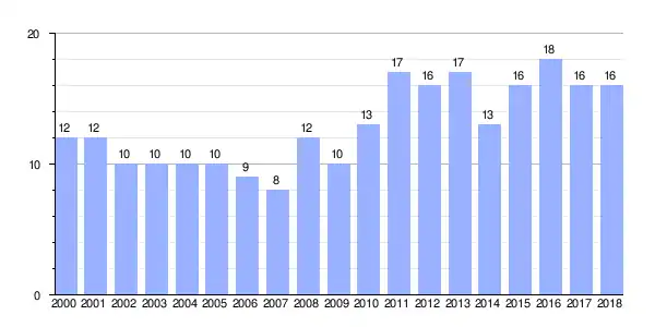 | Gráfica de evolución demográfica de Deira entre 2000 y 2018 |