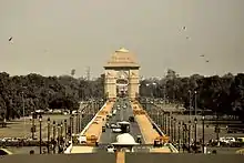 Lutyens dirigió a un grupo de arquitectos para diseñar la zona administrativa central de la ciudad, con la condición de mantener un tercio de la superficie como zonas verdes. En el corazón de la ciudad estaba la impresionante Rashtrapati Bhawan, antiguamente conocida como Casa del Virrey, situada en la cima de Raisina Hill. El Rajpath, también conocido como Camino del Rey, conecta la Puerta de la India con Rashtrapati Bhawan, mientras que Janpath, que la cruza en ángulo recto, conecta South End Road (renombrada Rajesh Pilot Marg) con Connaught Place. Actualmente, Rashtrapati Bhawan es la residencia oficial del presidente de la India.