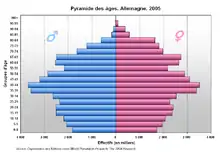 La demografía de Alemania es supervisada por la Statistisches Bundesamt (Oficina Federal de Estadística de Alemania). Según el primer censo desde la reunificación, la población de Alemania en 2023 era más de 84 millones,[1] lo que lo convierte en el segundo país europeo más poblado (solo después de Rusia) y el decimosexto país más poblado del mundo.