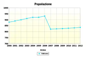 Hacia 2013, la población de la Ciudad del Vaticano es de 839 ciudadanos.[1]