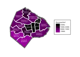 La población de la Ciudad de Buenos Aires censada en octubre de 2010, cuenta con 2 890 151 habitantes, un 4,1% más que en el censo de 2001, y una importante densidad demográfica que asciende a 14.307,68/km².[1] La superficie es de 202 km².[2] Sin embargo, si se tiene en cuenta el área metropolitana (Aglomerado Gran Buenos Aires), cuya superficie asciende a 3.833 km², la población alcanza los 12.806.866 habitantes (2010), lo que convierte a la megalópolis en uno de los centros urbanos más poblados del mundo.[1]