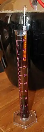 El densímetro se utiliza también en enología para determinar el momento de fermentación en que se encuentra el vino. Para medir la graduación alcohólica se utiliza el alcoholímetro de Gay-Lussac, con el que se mide directamente la graduación en grados Gay-Lussac.