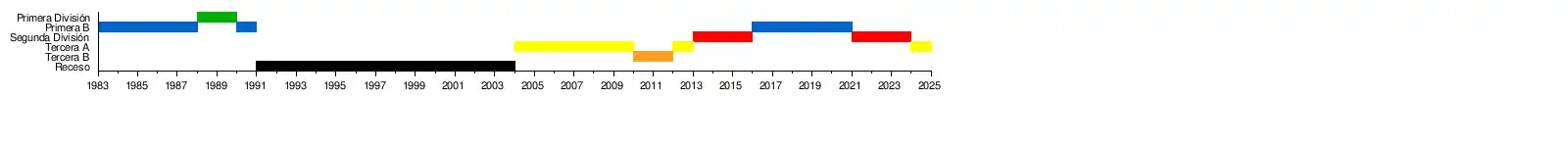 - Temporadas en Primera B: 11 (1983-1987, 1990, 2016-2020)