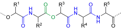 - Unión Internacional de Química Pura y Aplicada. «depsipeptides». Compendium of Chemical Terminology. Versión en línea (en inglés).