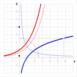 Geométricamente, una función y su inversa tienen gráficas que son reflexiones respecto la recta . Esta reflexión transforma el gradiente de cualquier línea en su recíproco.