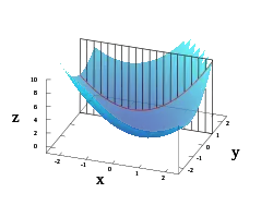 La gráfica de esta función define una superficie en el espacio euclídeo. Para cada punto de esta superficie hay un número infinito de rectas tangentes. La diferenciación parcial consiste en elegir una de estas rectas y hallar su pendiente. Normalmente, las rectas de mayor interés son las paralelas al plano y las paralelas al plano (que resultan de mantener constante o , respectivamente).