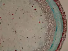 Mientras más xilema es producido y depositado, el diámetro del tallo se incrementa, el cambium expande su circunferencia añadiendo nuevas iniciales mediante dvisiones anticlinales. Esto ocurre de manera perpendicular a la superficie del tallo. Se puede observar el número de estas divisiones anticlinales contando las células radiales en las que dos células de xilema fueron producidas por una radial.[3]