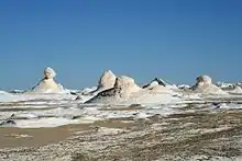 Al sur, más allá del oasis de Bahariya, se encuentra el Desierto Negro, un área de colinas volcánicas negras y depósitos de dolerita. Más allá de esto, al norte de Farafra, se encuentra el Desierto Blanco, un área de formaciones de roca de tiza esculpidas por el viento, que dan nombre a la zona. Al sur de Kharga, la meseta se eleva hacia Gilf Kebir, una región de las tierras altas que se extiende a lo largo de la frontera entre Egipto y Sudán y que alberga sitios prehistóricos como la Cueva de los Nadadores.