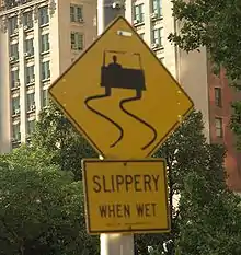De forma análoga, la fricción por deslizamiento normalmente genera una mayor cantidad de calor y de sonido. Uno de los ejemplos más comunes de fricción por deslizamiento es el movimiento de frenada de un vehículo de motor cuando se bloquean los neumáticos sobre la calzada, un proceso que genera una cantidad considerable de calor y de sonido, y generalmente se tiene en cuenta al evaluar el valor de la contaminación acústica generada por una carretera.[3]